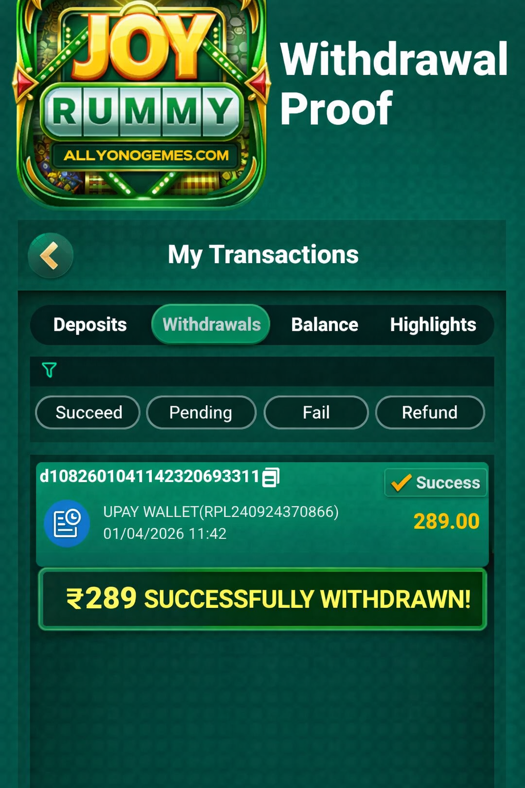 Joy Rummy Game me withdrawal process kaafi simple hai: